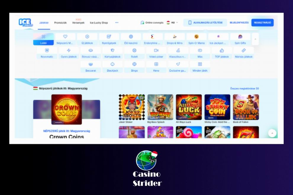 2025-ben az IceCasino platformján rengetegféle lehetőségek vár. Tapasztalataink alapján úgy tűnik, hogy a következő játéktípusok a legnépszerűbbek ebben az online kaszinóban: